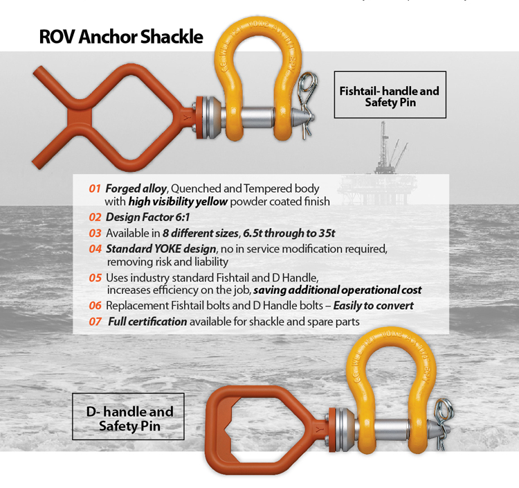 Over the years, shackles continued to be developed to assist ROV operators who face a constant challenge when deploying or recovering equipment on the sea bed. Safety is always the first priority, but operators strive to make efficiencies by using the correct equipment specifically designed with them in mind.